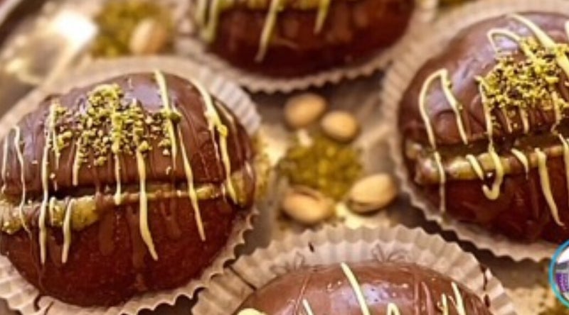 Dit jaar lanceren wij de gloednieuwe Dubaibol. Het begint allemaal bij ons ouderwetse oliebollenrecept, gevolgd door een overheerlijke pistache crème waar wij verse krokant gebakken kadayf aan toevoegen. De bol word afgemaakt met romige pistache chocolade en tot slot Gedecoreerd met vers gebrande pistache nootjes en bladgoud.